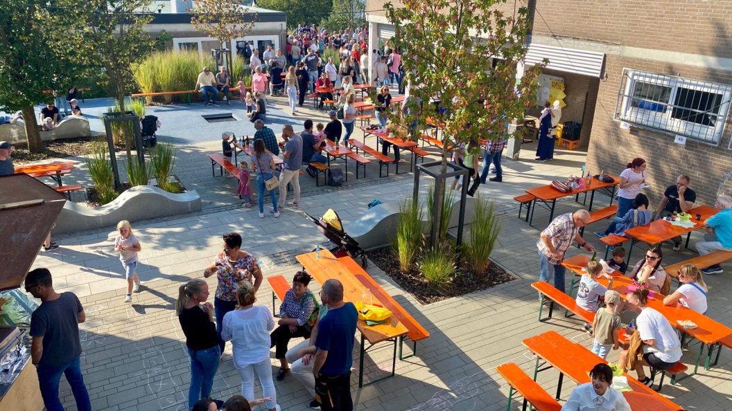 Seit Corona gab es kein Schulfest mehr. Doch es gab diesmal gleich mehrere Anlässe zum Feiern: das 60-jährige Jubiläum der Aartal-Mittelpunkt-Grundschule musste nachgeholt werden, und auch die Einweihung des neuen Schulhofes stand an. Neben viel Prominenz, wie dem Ersten Kreisbeigeordneten Roland Esch, waren auch Bürgermeister Marco Herrmann, Schuldezernent Matthias Fing, Pfarrer Frank Rudolf, die Planer der FFS sowie vor allem alle Kinder, Schüler, Geschwister, Omas, Opas, Mitglieder des Fördervereins, Eltern und Freunde der Schule anwesend.